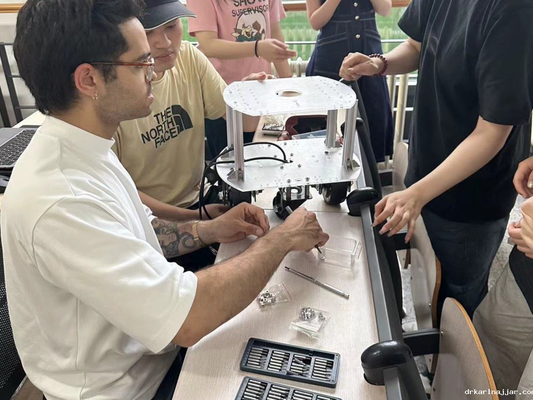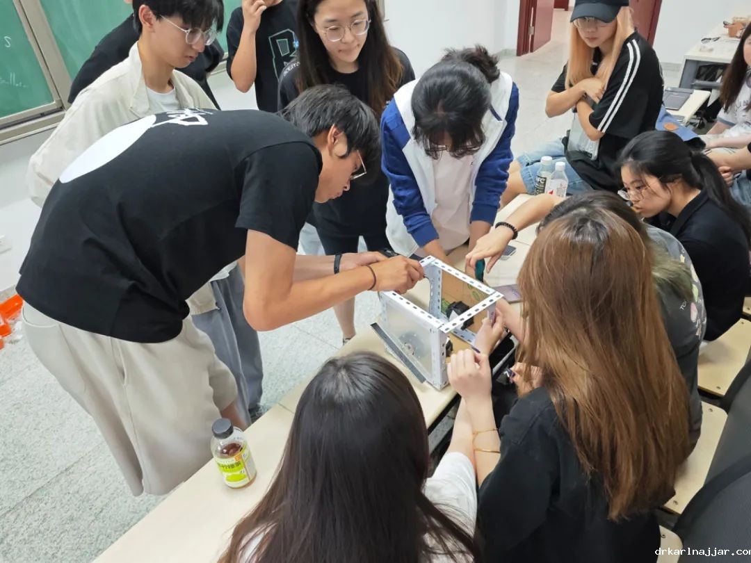 同学们在《情感机器人》课堂上组装配件