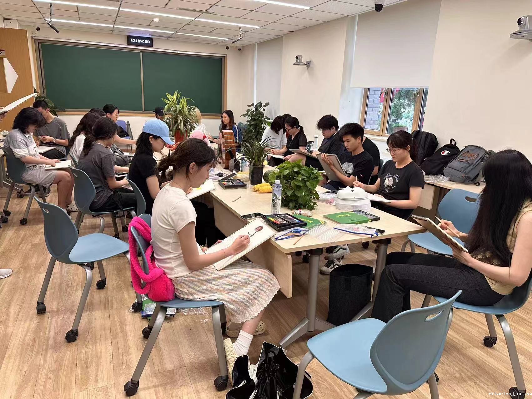 同学们在《艺术的启示》课堂上绘画实践