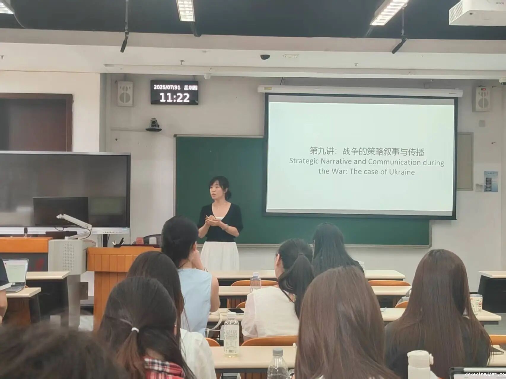 课堂之上,张老师引领学生们穿梭于信息洪流之中。从国际媒体巨头的话语策略,到区域性报道的独特视角;从技术革新对传播模式的颠覆,到地缘政治在叙事中投下的暗影……她巧妙地将复杂的理论编织进一个个精心挑选的国内外案例中。学生们得以系统性地窥见全球新闻传播的全貌,理解不同文化背景、不同技术平台、不同意识形态下,同一事件如何被讲述成迥异的故事。这十天的深度架构,为每位参与者打开了一扇面向世界的窗。窗外是阳光,古楼与槐树,窗内,一群求知若渴的青年们就着一个国际议题高瞻远瞩,畅所欲言。